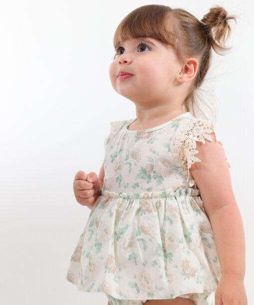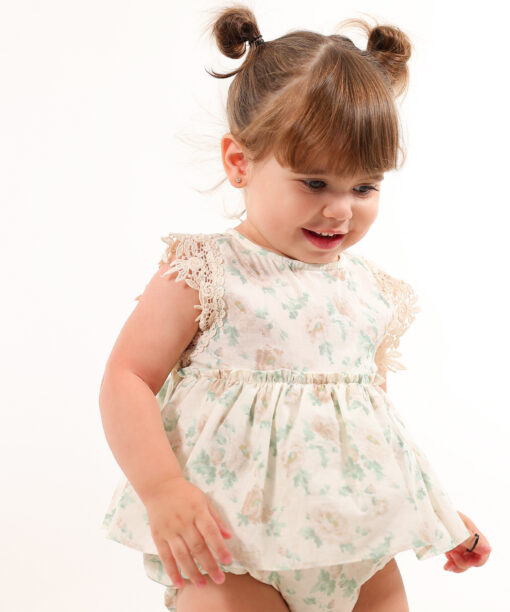 בגד גוף בפרינט פרחוני עדין עם חצאית מלמלה גדולה ורקמות בכתפיים – סופר סטייל!!!!